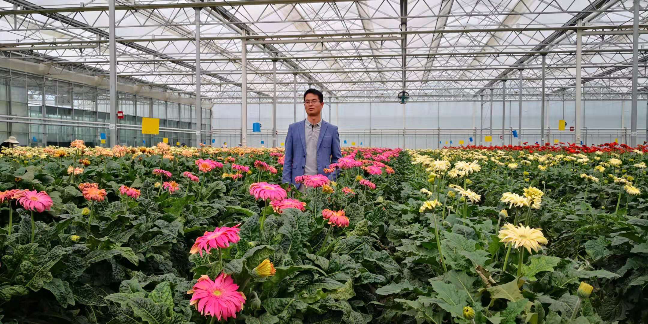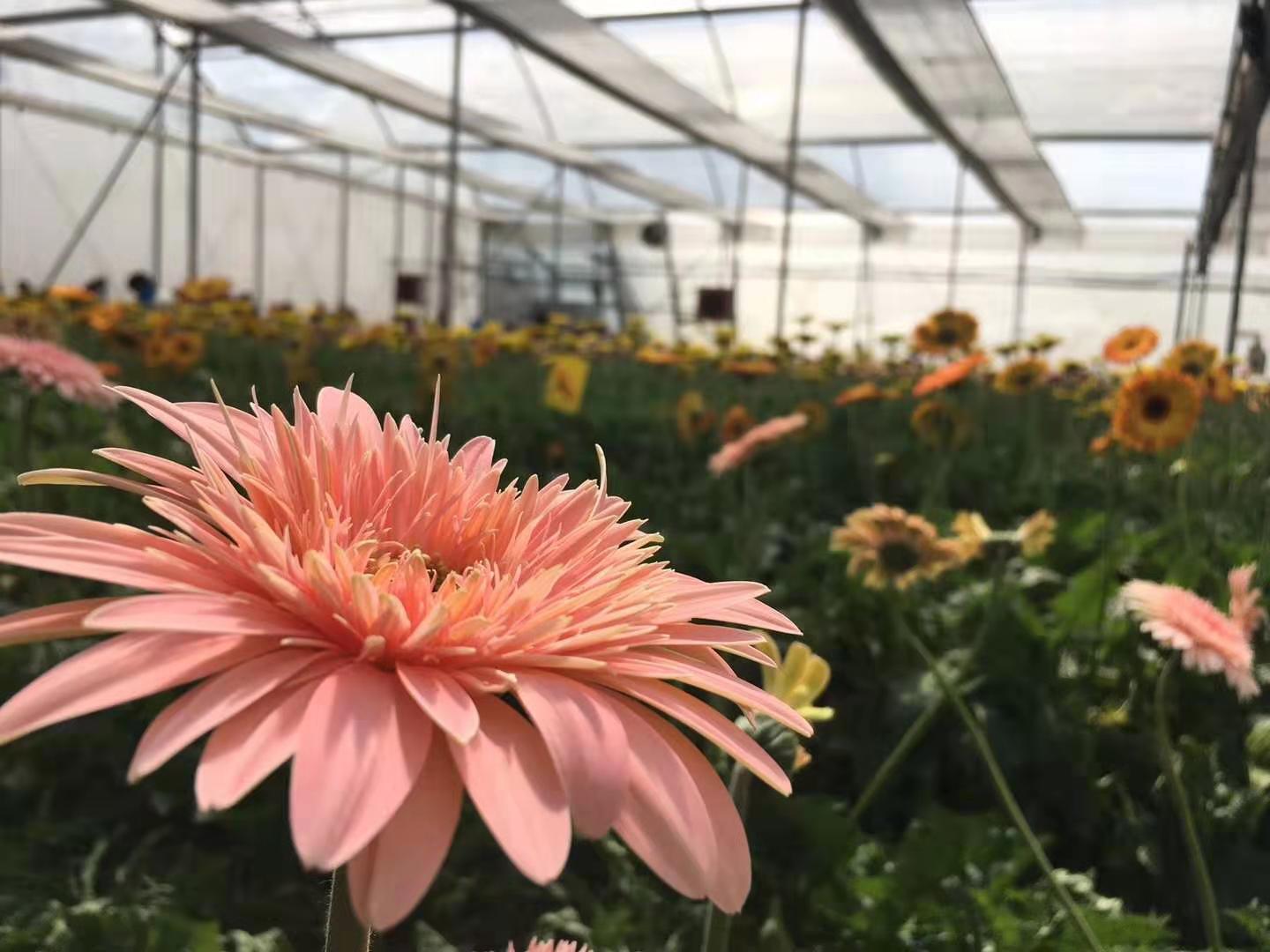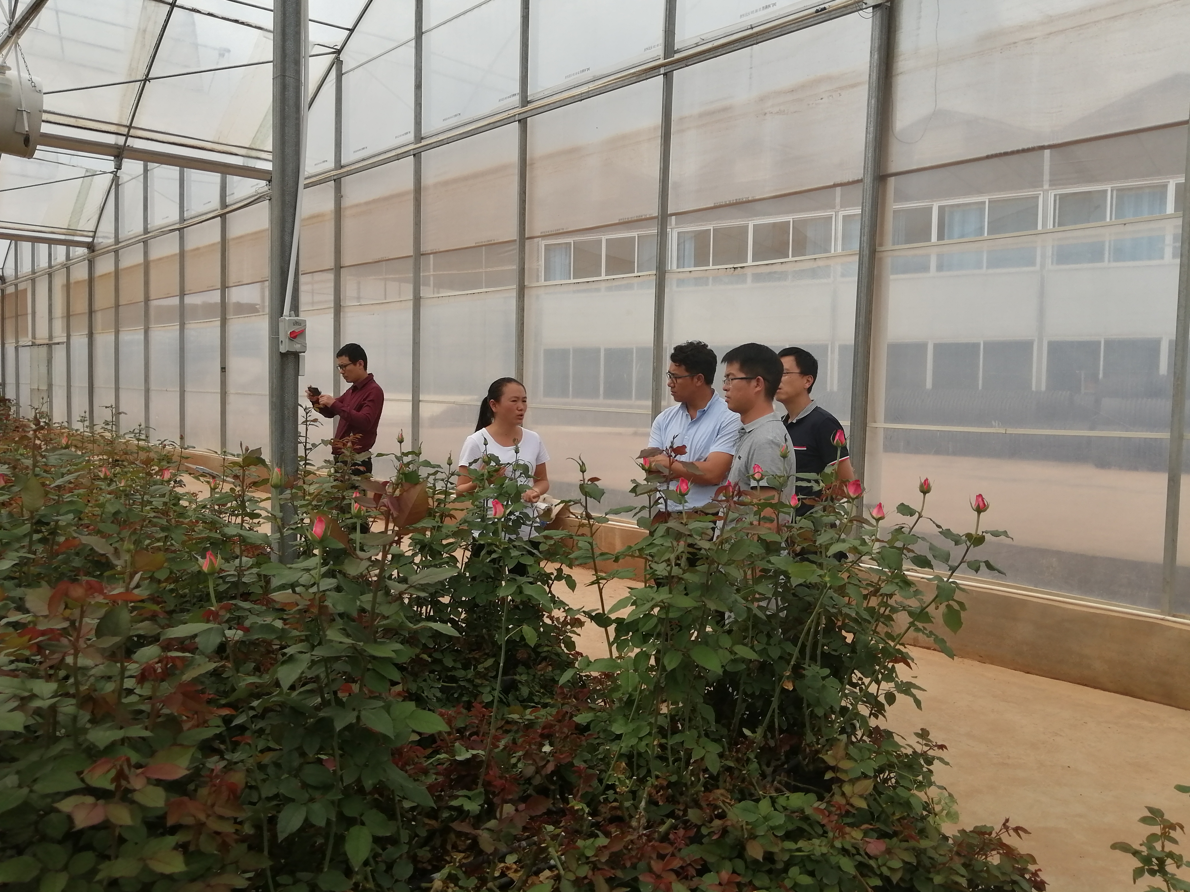 温室大棚里闷热的空气让我们的考察队伍睁不开眼,但只要鲜花好,我们也都开心!